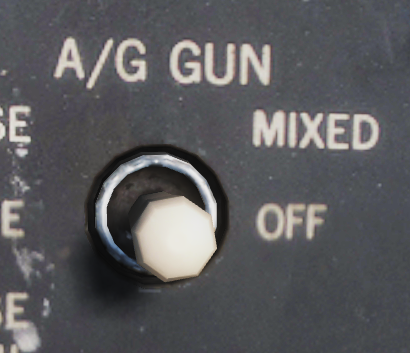 在选择了其他空对地武器的情况下,将武器控制面板(在 RIO 左侧垂直控制台上)的 A/G GUN 开关拨至 MIXED 档位,便可以同时使用航炮和其他武器。在设置为 MIXED 档位后,按下扳机可发射航炮,但是 HUD 中将不会显示航炮瞄准标识,因为 HUD 标识正被用于显示当前选中武器的投放数据。使用航炮混合模式时,HUD 中的 ADL 是航炮唯一的参考标识,飞行员需要自行估算炮弹命中点。