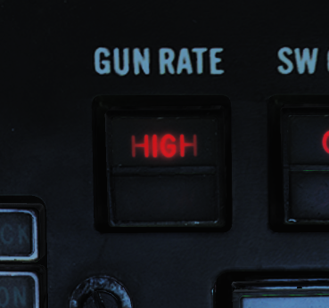 航炮的两种模式对应的射击速率分别是每分钟 4000 发和每分钟 6000 发。低射速模式通常用于对地攻击,高射速模式用于对空攻击。可以通过 ACM 面板上的 GUN RATE(航炮射速)开关切换,面板上也会显示当前选定的模式。选择 ACM 模式将会自动选择航炮高射速模式。每次按下扳机的最大连射开火数值可以设置为50、100、200或无限制。默认值为200发,玩家可以通过地勤来变更为其它设置。