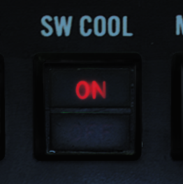 发射 AIM-9 前需要启用导引头冷却。按下飞行员 ACM 面板的 SW COOL 按钮开关,或在相同面板选择 ACM 模式来启用导引头冷却。按下后会指令冷却导弹导引头,挂点状态标识旗立刻显示就绪,但使导引头发挥全部性能需要进行至少60秒冷却。
